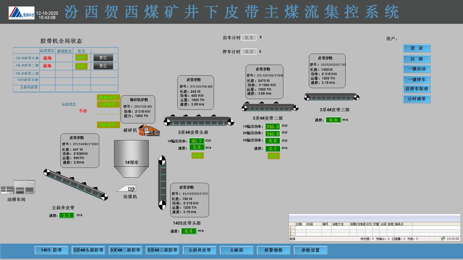 地面集控?cái)?shù)據(jù)中心實(shí)現(xiàn)煤流運(yùn)輸系統(tǒng)集中遠(yuǎn)程自動控制,實(shí)現(xiàn)單控、聯(lián)控、順序啟停、一鍵啟停。達(dá)到無人值守,有人巡檢。